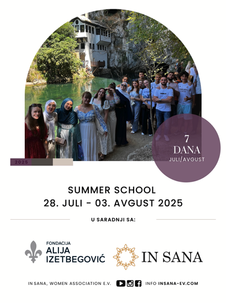 I ove godine Fondacija “Alija Izetbegović” u saradnji sa udruženjem IN SANA iz Njemačke organizuje omladinsku Ljetnu školu u Bosni i Hercegovini 2025!