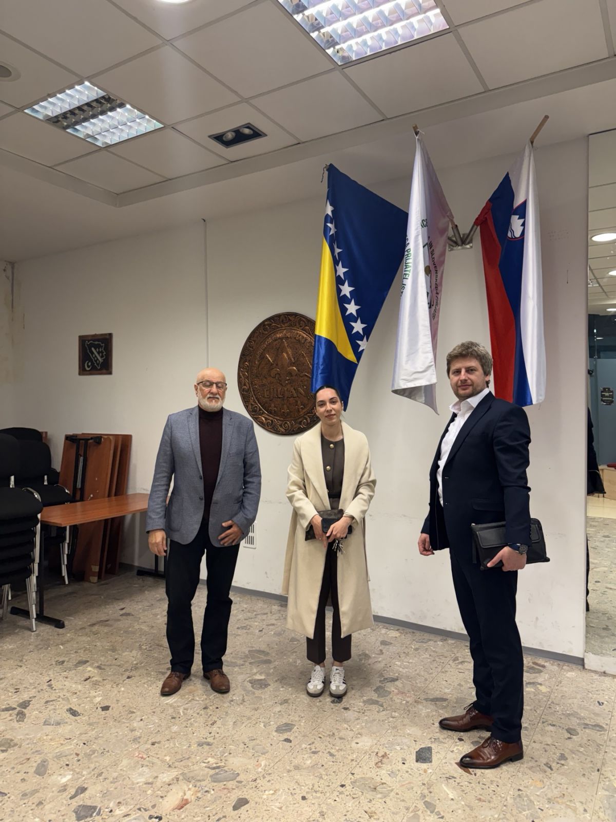 U okviru službene posjete održan je i sastanak u Ambasadi Bosne i Hercegovine u Republici Sloveniji sa sekretarom Ambasade Edinom Ljutovićem i savjetnicom Aidom Hota. Razgovarano je o dosadašnjim i planiranim aktivnostima Ambasade i Ureda, te je istaknuta važnost koordiniranog djelovanja institucija i organizacija civilnog društva u rješavanju statusnih pitanja dijaspore i jačanju veza sa domovinom.